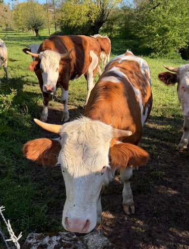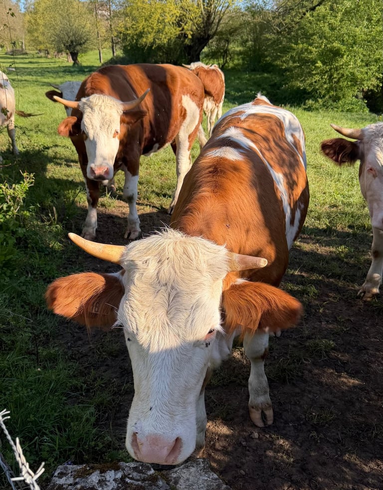 Eine unserer Übernachtungen hatte einen besonderen Nebeneffekt. Wir wussten beim Einrichten des Lagers, dass auf der angrenzenden Weide Kühe standen – aber sie waren weit weg, in einer ganz anderen Ecke. Kein Problem, dachten wir. Und lagen damit nur halb richtig. Am nächsten Morgen standen sie plötzlich da. Direkt am Zaun. Neugierig, gross, und offensichtlich der Meinung, dass wir zu ihrem Morgenritual gehören. Wir waren nicht erschrocken – aber wir mussten doch schmunzeln. Bessere Wecker gibt es kaum.